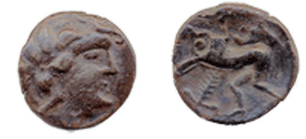 Les monnaies évolueront vers un type plus petit avec à l’avers une tête et au revers encore un animal, tête de cochon ou de sanglier sur un corps humain. Ce corps est toujours entouré de signes dont on ignore la symbolique. Sur une monnaie, les seins sont représentés !